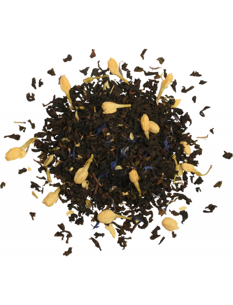 Композиція ретельно відібраного листя цейлонського чорного чаю з високогірного регіону Нувара Елія з додаванням квітів жасмину, волошки та натурального аромату жасмину.