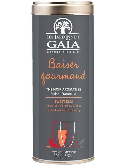 Солодкий поцілунок, ця чудова суміш диких фруктів, прикрашена маленькими листочками полуниці, супроводжує вибір чорного чаю, який одночасно солодкий і круглий. Щоб ніжно смакувати.