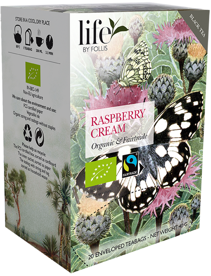 Чудовий чорний чай зі справді літнім шведським ароматом. Як пити свіжу малину з вершками. Органічний і сертифікований Fairtrade.