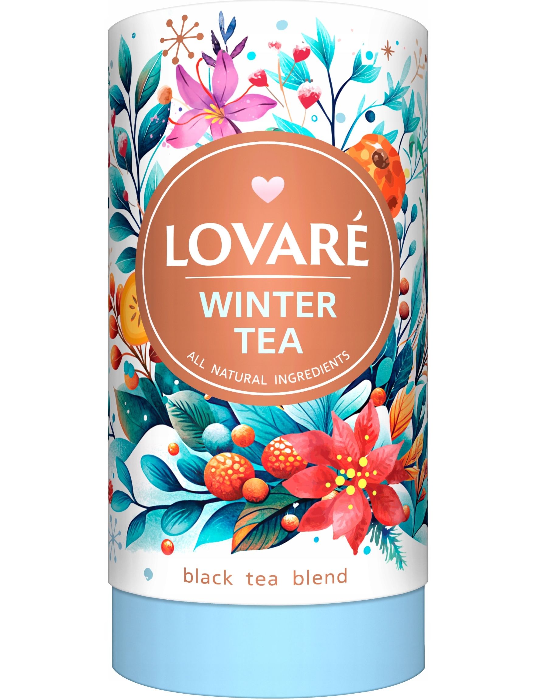 Winter Tea - це святкова композиція на основі чорного чаю зі шматочками папайї та манго, пелюстками квітів сафлору, натуральними ароматами хурми, шафрану та дині.