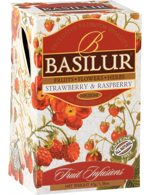 Склад: гібіскус (72,5%), листя стевії (6%), яблуко (5%), цедра апельсина (5%) і натуральні ароматизатори полуниці (5,5%), малини (5,5%) і лимона (0,5%).