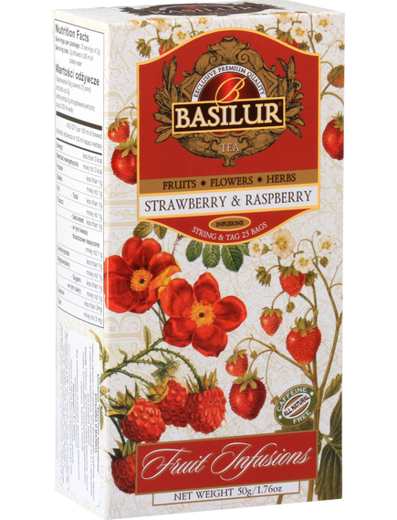 Склад: гібіскус (72,5%), листя стевії (6%), яблуко (5%), цедра апельсина (5%) і натуральні ароматизатори полуниці (5,5%), малини (5,5%) і лимона (0,5%).