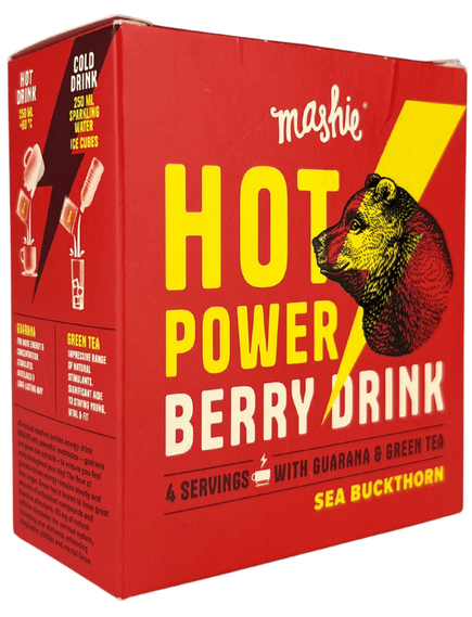 Склад: обліпиха, тростинний цукор, журавлина, горобина, екстракт гуарани, екстракт зеленого чаю, екстракт кориці. Повністю натуральний енергетичний напій з пюре з ягід з потужними ноотропами — екстрактами гуарани та зеленого чаю — щоб ви відчували себе бадьоро протягом дня