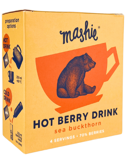 Склад: обліпиха, тростинний цукор, журавлина, горобина, екстракт кориці. Як і всі натуральні напої з ягідного пюре, Mashie - це новий вибір для любителів гарячих напоїв, натхненний традиціями північних земель. Поживні та безперечно смачні ягоди були змішані разом, щоб ваше тіло та розум...