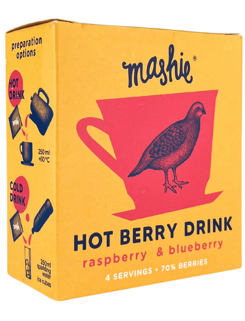 Як і всі натуральні напої з ягідного пюре, Mashie - це новий вибір для любителів гарячих напоїв, натхненний традиціями північних земель. Поживні та безперечно смачні ягоди були змішані разом, щоб ваше тіло та розум відчували себе задоволеними та здоровими. Спробуйте його як гарячий або холодний освіжаючий напій протягом дня, вранці чи ввечері.