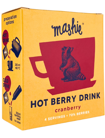 Як і всі натуральні напої з ягідного пюре, Mashie - це новий вибір для любителів гарячих напоїв, натхненний традиціями північних земель. Поживні та безперечно смачні ягоди були змішані разом, щоб ваше тіло та розум відчували себе задоволеними та здоровими. Спробуйте його як гарячий або холодний освіжаючий напій протягом дня, вранці чи ввечері.