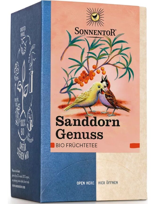 Пристрасть у чашці! Цей жовто-оранжевий мерехтливий обліпиховий чай із чудовим фруктовим ароматом справляє насолоду. Його аромат підкреслюють лаванда і яблуко. Насичений смак чудово поєднується з солодкими овочами, такими як морква та буряк, десертами з яблуками та корицею, фруктовими варіаціями молочного рису. Вирушаймо на смак!