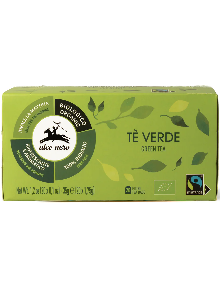 Зелений чай Alce Nero (походження від Camellia Sinensis) — це суміш добірних зелених чаїв, що характеризуються легким смаком, приємним ароматом і золотистим кольором. Органічний зелений чай Alce Nero - це вишукана колекція зелених чаїв з півдня Індії, яка зберігає весь аромат і типовий смак плантації.