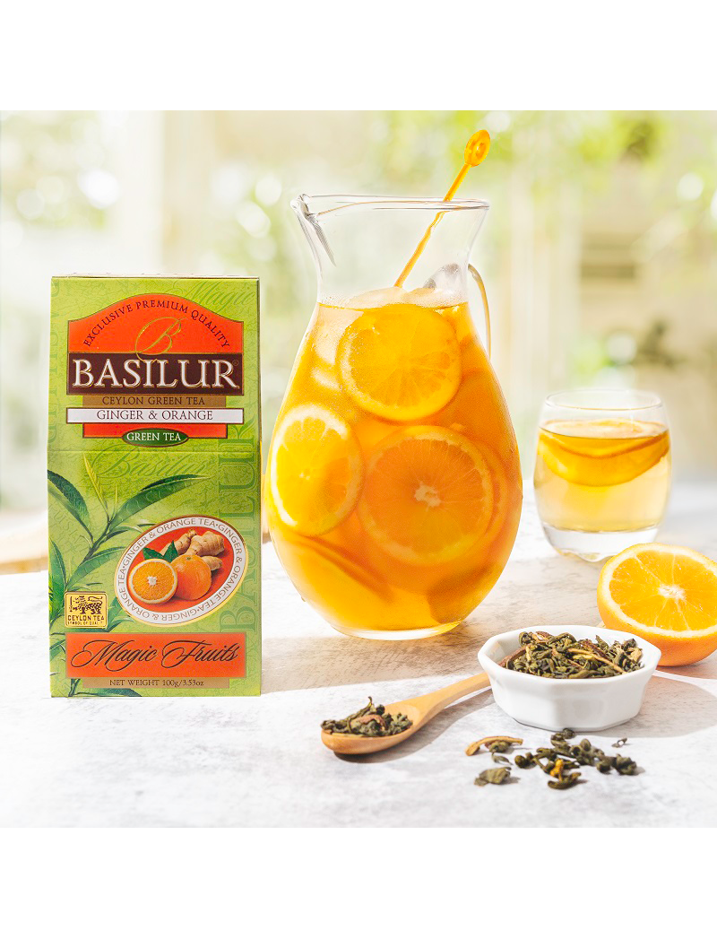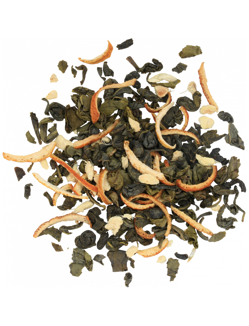 Цейлонський зелений листовий чай з імбиром, цедрою апельсина та ароматом імбиру та апельсина.