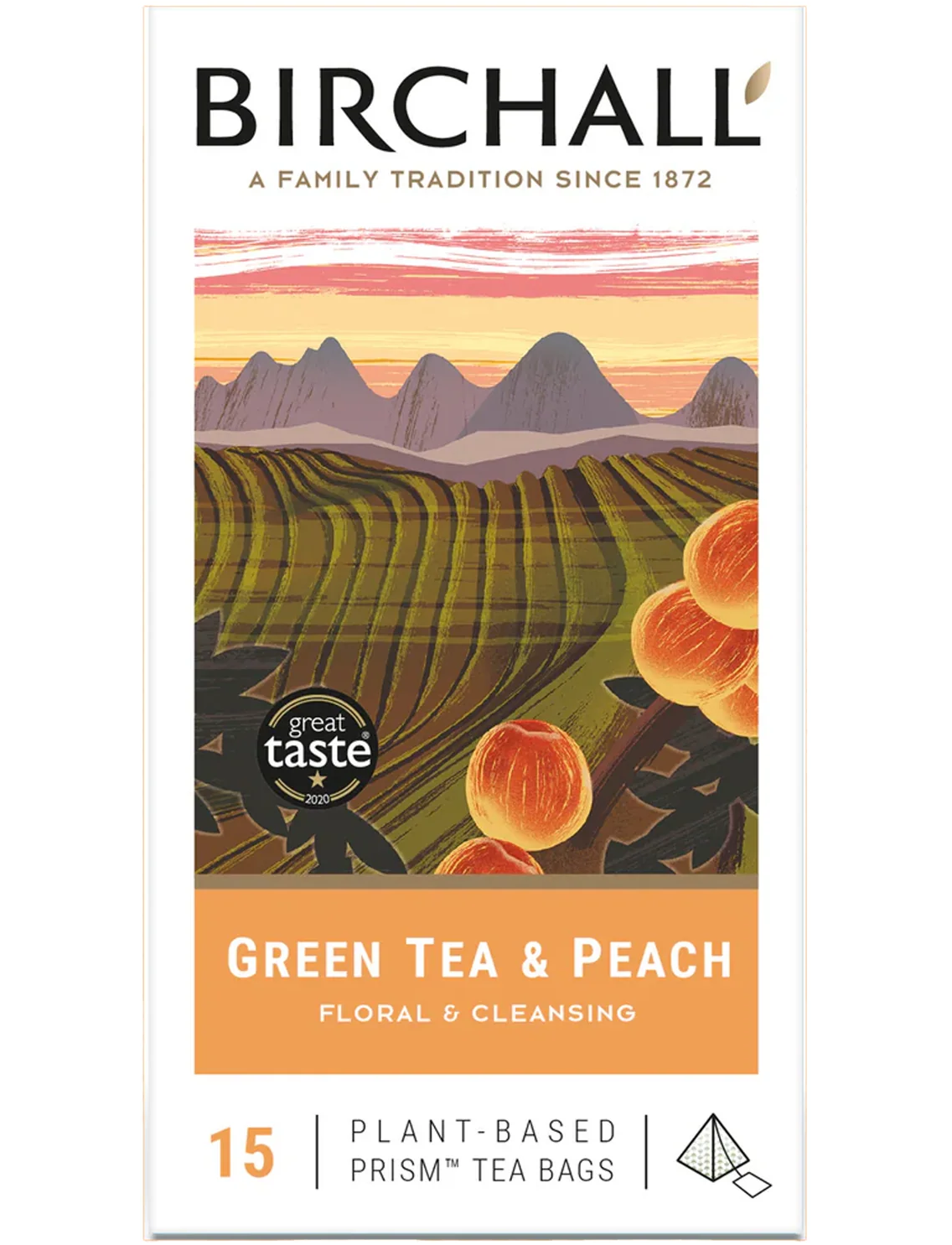 Зелений чай Birchall з персиком – це традиційний зелений чай, змішаний зі справжніми шматочками фруктів та квітами календули. Цей насичений ароматний зелений чай є багатим джерелом антиоксидантів, відомих своїми очисними та детоксикуючими властивостями, і містить менше кофеїну, ніж чорний чай, що робить його чудовою заміною, якою можна насолоджуватися протягом дня. Після заварювання гарячою водою наші яскраво-зелені листки розгортаються, утворюючи насичений, насичений жовтий настій із солодким фруктовим ароматом, який є ніжним, легким та округлим з ніжними квітковими нотками.
