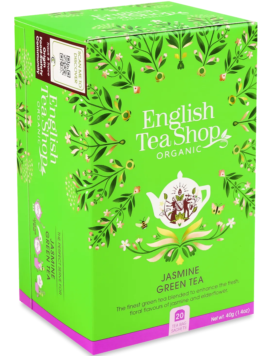 Найкращий цейлонський та китайський зелений чай, змішаний для підсилення свіжих квіткових ароматів жасмину та бузини.