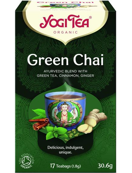Коли такі популярні напої, як зелений чай і чай, поєднуються в одному YOGI TEA®, виходить справді особлива триєдність: зелений чай бадьорить тіло, прянощі чаю заспокоюють душу, а новий досвід наповнює розум. Ви відчуєте це, не поспішаючи, щоб насолодитися цією унікальною композицією, підсолодженою та з невеликою кількістю молока або веганською альтернативою.