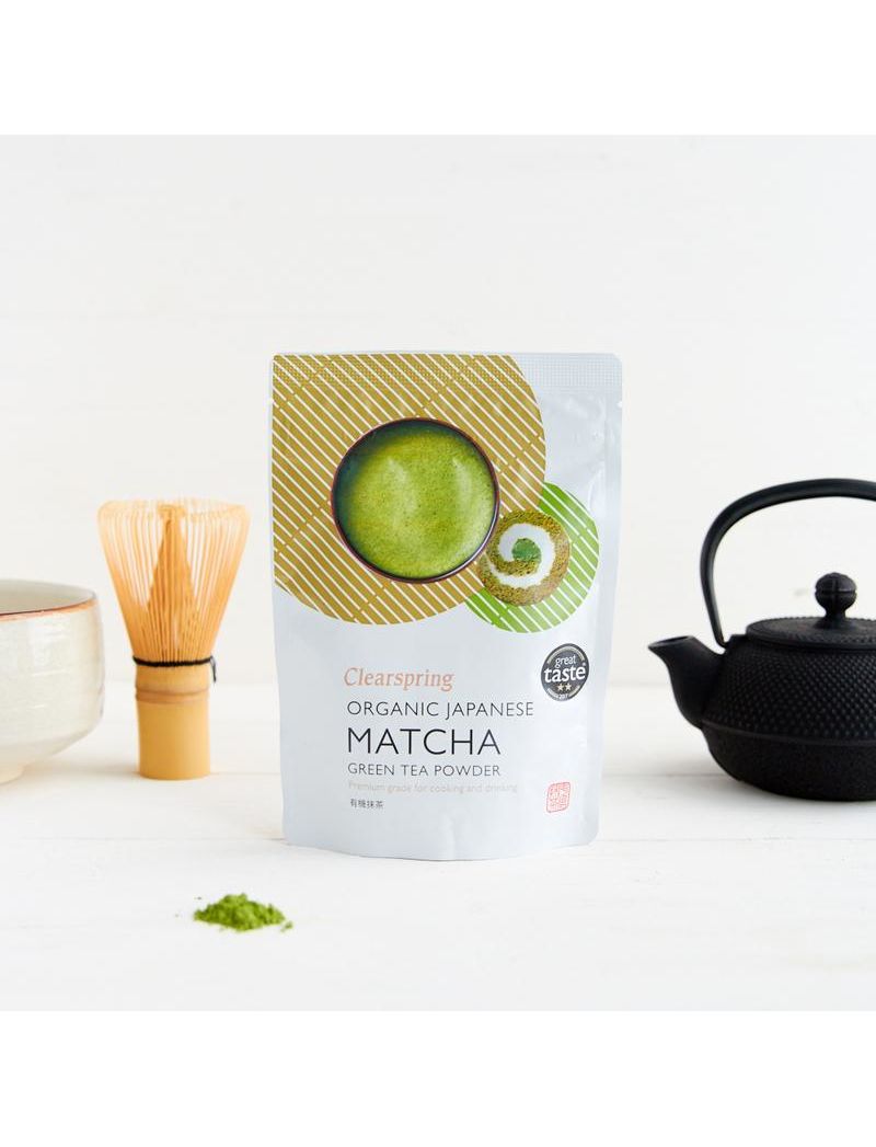 Матча - це тонко подрібнений живий порошок зеленого чаю, виготовлений з листя японського чаю найвищої якості. Clearspring Organic Premium Matcha походить з Удзі, регіону високо на пагорбах навколо Кіото, відомого виробництвом найкращих японських чаїв. До цієї віддаленої місцевості можна дістатися лише пішки, вона незабруднена і багата такими дружніми жуками, як павуки, сонечка, богомоли та бабки, щоб тримати шкідників під контролем (найкраще використовувати органічну матчу, оскільки неорганічна матча вирощується з використанням надмірної кількості сільськогосподарських добрив і пестициди). Кілька останніх місяців вирощують у тіні, щоб листя наповнилося хлорофілом, найкращі молоді бруньки чаю збирають, сушать і подрібнюють у гранітній ступці.