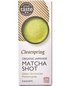 Склад: органічний порошок зеленого чаю матча (100%). Розпочніть свій день із Clearspring Organic, природно концентрованого, 100% Matcha Shot. Дрібно подрібнений порошок, виготовлений із найкращого листя зеленого чаю преміум-класу, вирощеного в тіні в чайному саду високо на пагорбах Удзі,...
