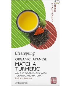 Склад: листя зеленого чаю Сенча* (58,5%), куркума* (40%), порошок зеленого чаю матча* (1,5%). *Органічний інгредієнт. Clearspring Organic Matcha Turmeric ідеально поєднує японський зелений чай, глибоко підбадьорливий смак першокласного матчу з насиченими та вогняними нотами золотої...