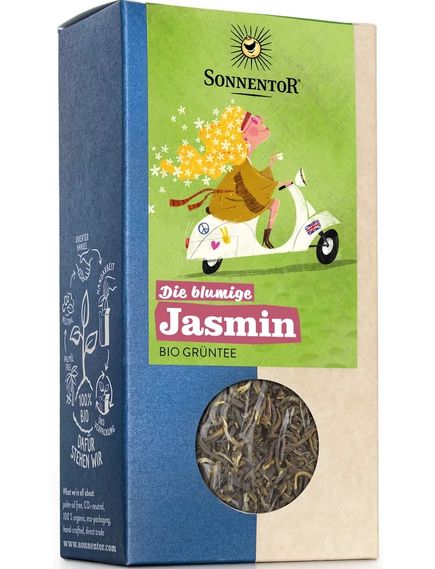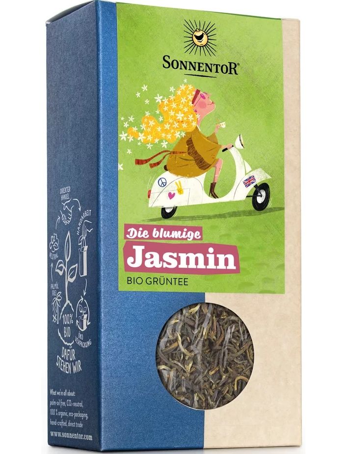 Квітковий жасмин надихає кожне чаювання. Цей відомий сорт зеленого чаю має велику силу квітів, а трав’янистий зелений чай виділяє аромати квітів жасмину. Щоб отримати цей популярний китайський квітковий чай, квіти жасмину розпарюють разом із чайним листям. Після того, як вони випустять запах, їх видаляють із зеленого чаю.