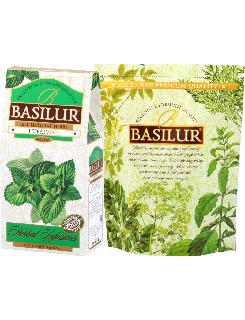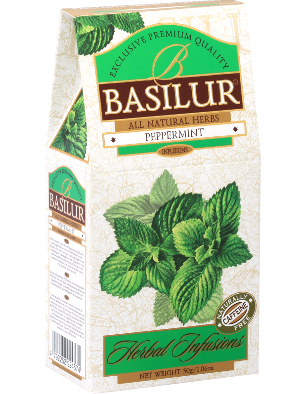 Насолоджуйтеся чудовим ароматом трав'яного настою Basilur Peppermint, який освіжить вас, як гірський бриз. Ідеальний напій після їжі, він полегшить травлення та заспокоїть почуття.