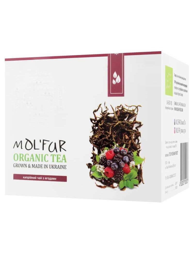 Широкий спектр цілющих властивостей кипрійного чаю доповнений ягодами малини, чорниці та брусниці. Ягідний присмак та аромат дарує естетичну насолоду! Гарно відновлює недостачу вітамінів у зимовий період, підвищує імунітет.