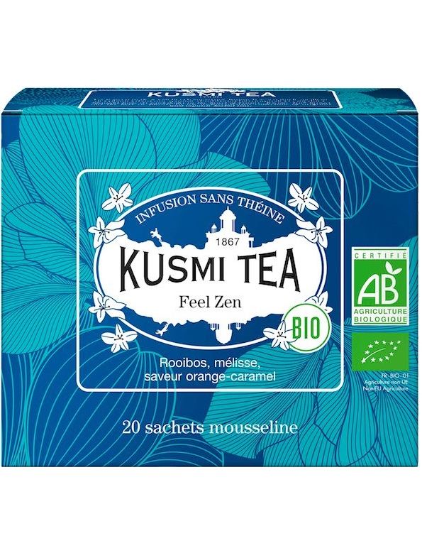 Натисніть паузу. Чорний екран. Більше не дзвонять. Ваш трав'яний чай заварюється, коли ви входите у свій міхур релаксації. Ви від’єднуєтеся, щоб краще відновити зв’язок. До вашого благополуччя, до вашого внутрішнього світу. Ваш секрет? Органічний настій Feel Zen, здоровий, спокійний, без кофеїну.