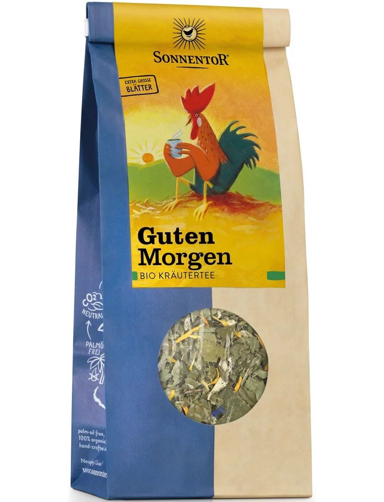 Доброго ранку, сонечко! З цим чудовим чаєм гарантовано сонячний день. Його сильний м’ятний аромат освіжить вас вранці та підштовхне до викликів дня. Але не тільки на ранок, його також можна вживати зі шпинатом, мангольдом і десертами, а також чудово підходить як засіб для травлення. Сушені трави упаковують на фермі родини Зака. Це робиться вручну, щоб зберегти ефірні олії. Будь ранньою пташкою!