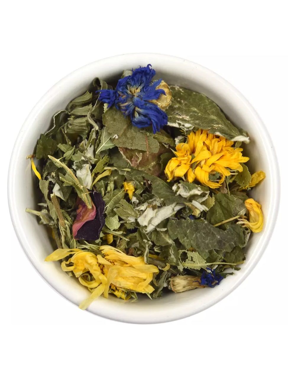 Склад: листя малини органічної, меліса органічна, листя ожини органічної, волошки сині, цвіт липи органічної, календула органічна, розмарин органічний, чебрець органічний, бутони троянди органічної.