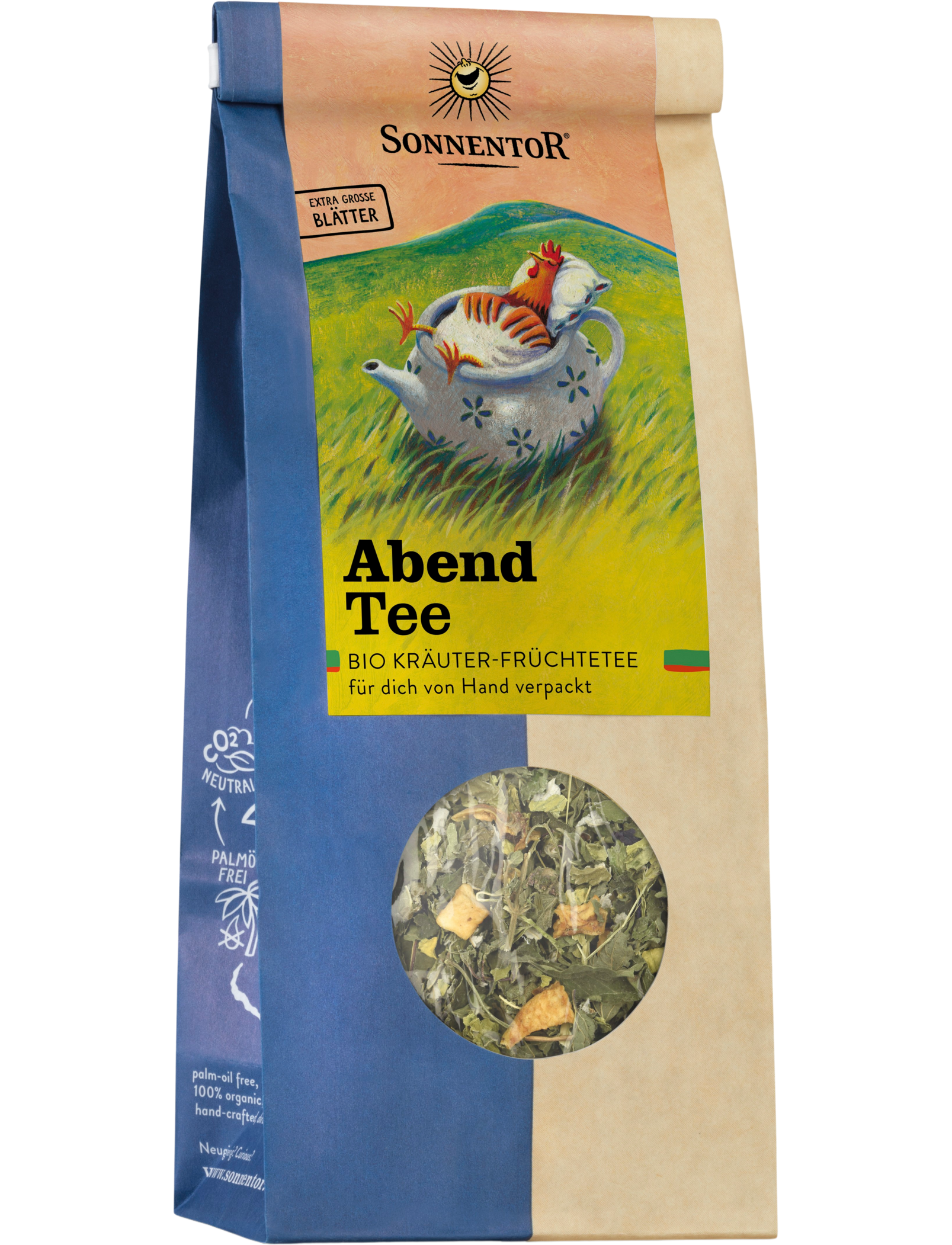 Потрібне частування перед сном? Цей вечірній чай - це ваш власний піщаний чоловік. Сьорбнувши, ти зануриш втомлену голову в подушку. Гармонійна, насичено-жовта трав’яна суміш з мелісою, листям малини та мальвою звичайною, яка вражає своєю терпкою та ароматною ноткою. Якщо ви ще не зовсім готові спати, спробуйте це з суші або макі. Цей чай виробляється вручну на фермі родини Бауер у Вальдфіртелі. До чашок, збирайтеся, вперед!