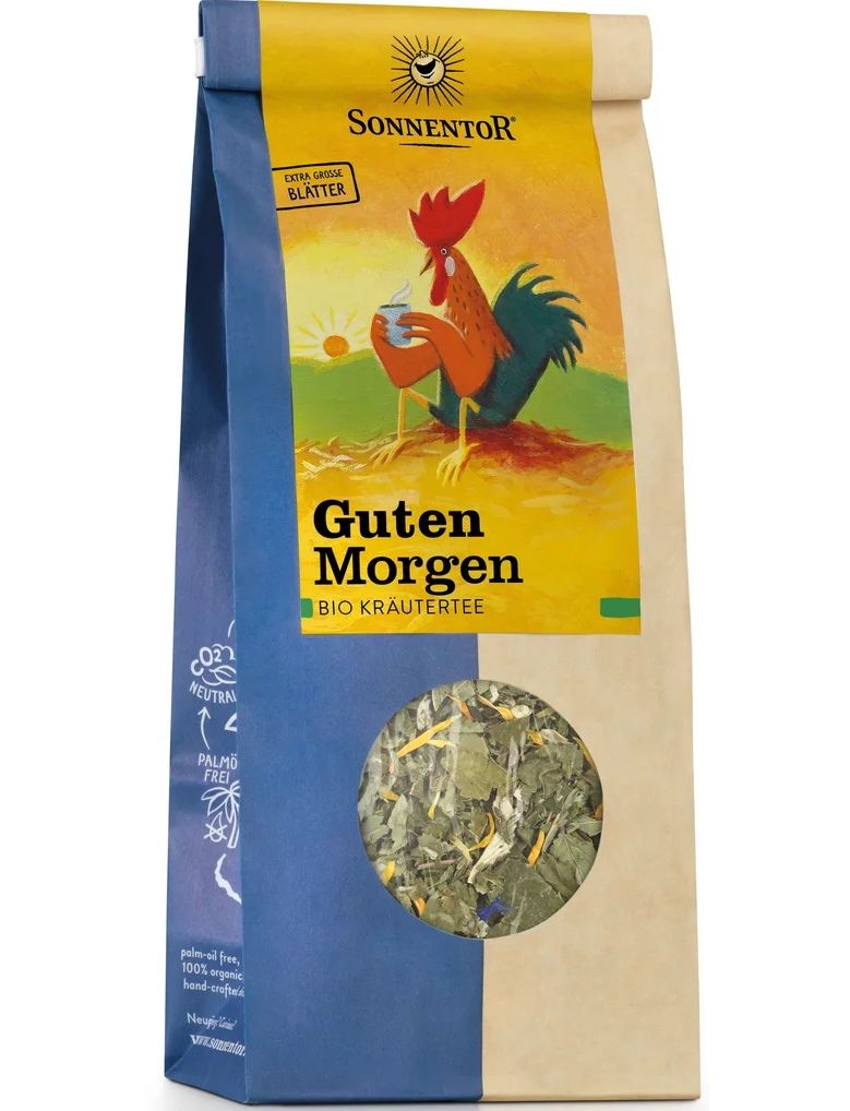 Доброго ранку, сонечко! З цим чудовим чаєм гарантовано сонячний день. Його сильний м’ятний аромат освіжить вас вранці та підштовхне до викликів дня. Але не тільки на ранок, його також можна вживати зі шпинатом, мангольдом і десертами, а також чудово підходить як засіб для травлення. Сушені трави упаковують на фермі родини Зака. Це робиться вручну, щоб зберегти ефірні олії. Будь ранньою пташкою!