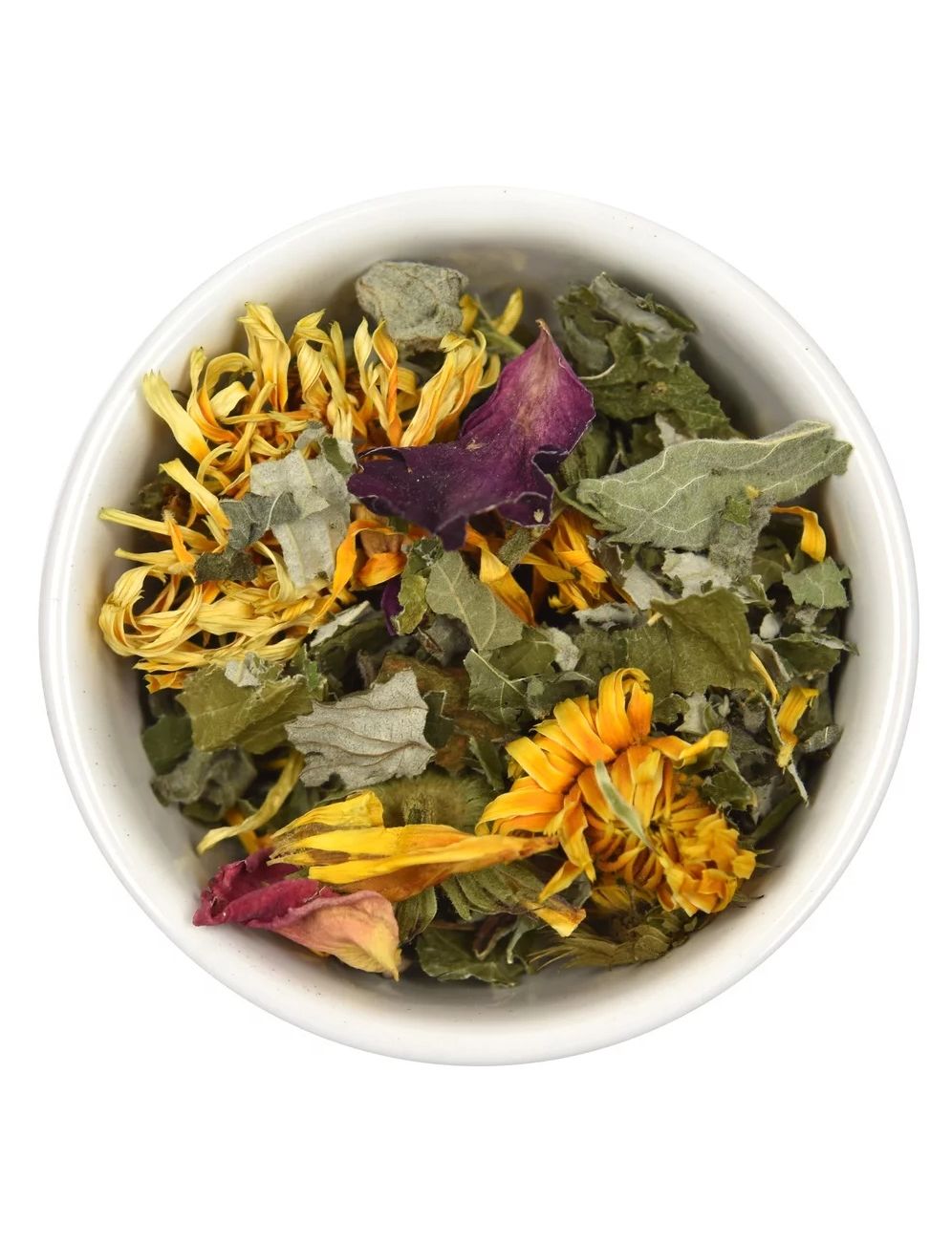 Склад: м'ята духмяна органічна, листя малини органічної, листя ожини органічної, календула органічна, волошки сині органічні, пелюстки соняшника органічного.