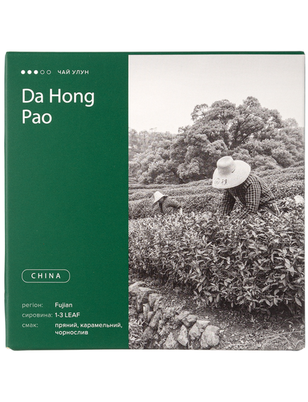 Чай Улун Да Хун Пао (Da Hong Pao, «Великий Червоний Халат») Походження Країна : Китай Регіон : Провінція Фуцзянь, гори Уїшань (Wuyi Shan) Тип чаю : Улун (напівферментований чай, займає проміжне місце між зеленим та чорним) Історія : Легендарний чай,...