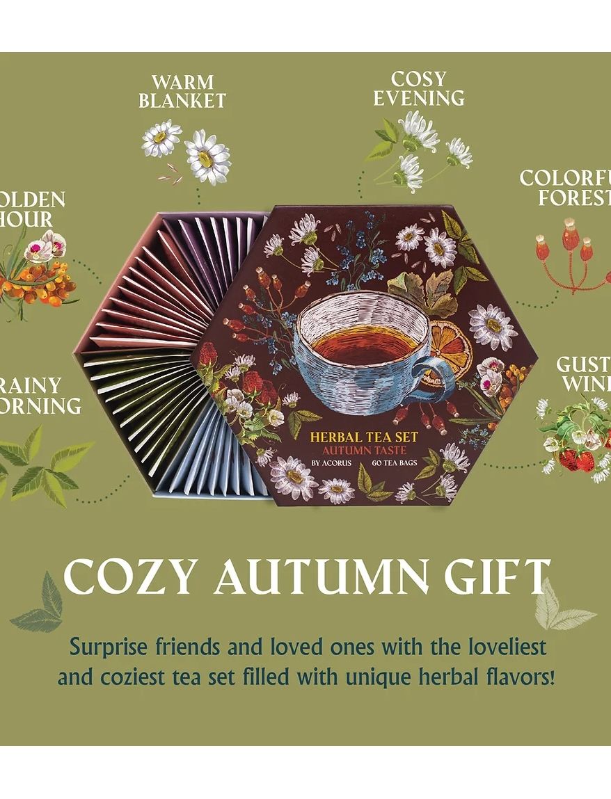 Асорті трав'яних чаїв складається з 6 різних смаків. Кожен смак створено з насиченої та натуральної суміші трав і може ідеально підійти для ваших затишних осінніх вечорів. Насолоджуйтеся моментами з коханими чашкою теплого та смачного чаю.
