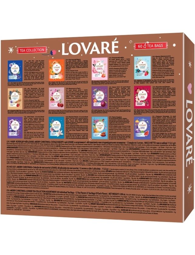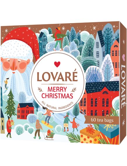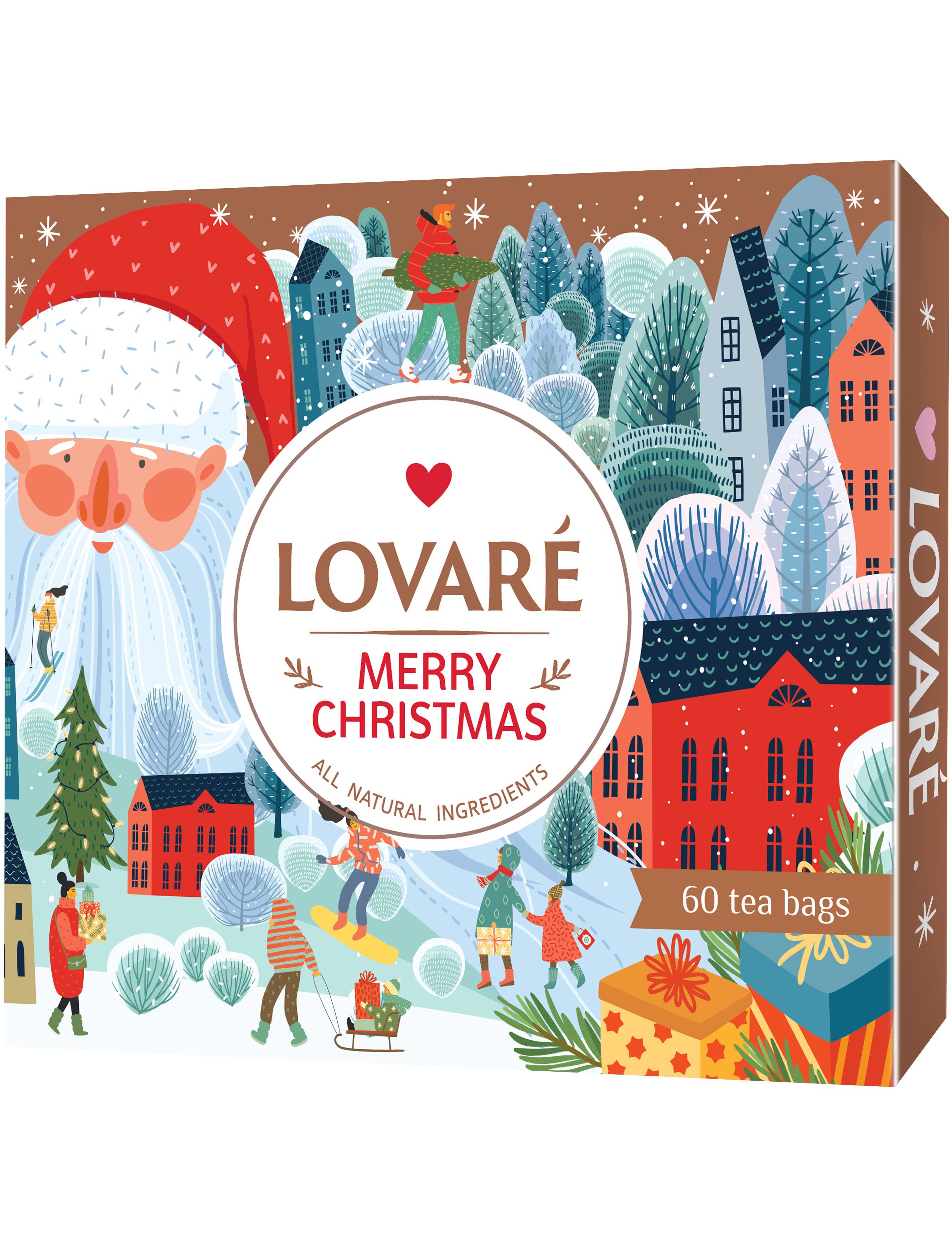 Новорічна колекція чаю Merry Christmas від Lovare 12 видів по 5 шт - 1001 nights, Passion fruit, Strawberry marshmallow, Champagne splashes, Cleopatra's night, Cherry on cake, Night beautea, Royal dessert, Wild berry, Bergamot vanilla, Aladdin lamp, Turkish delight.