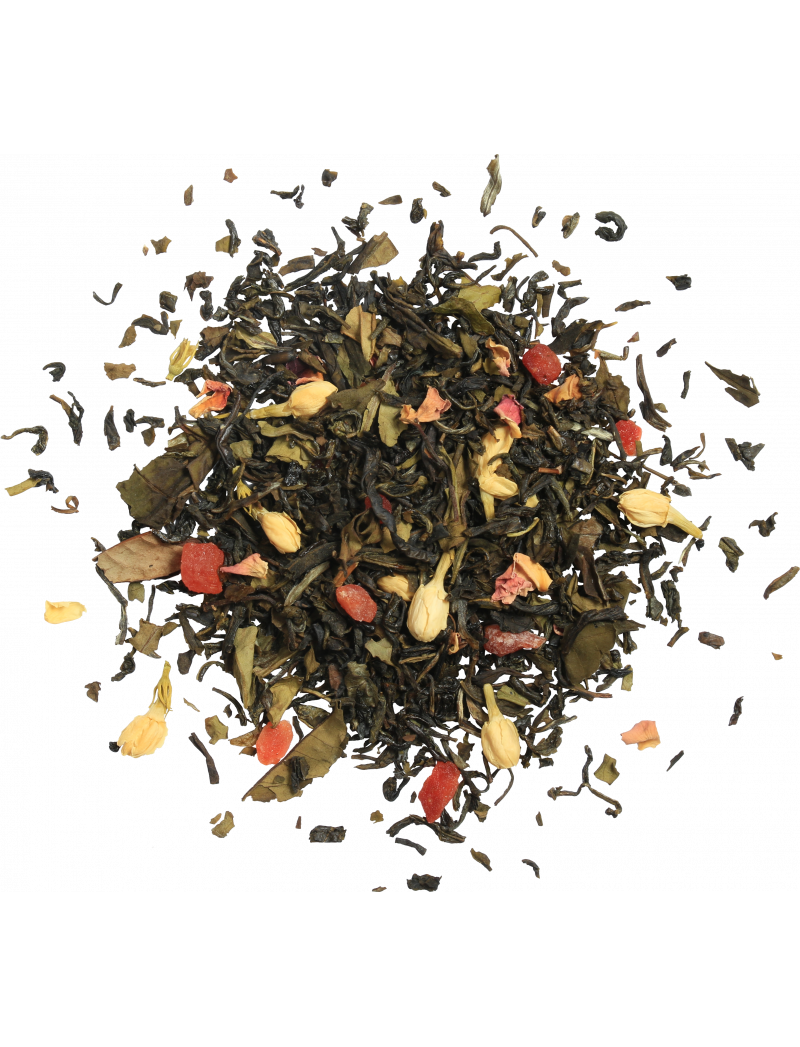 Дивовижно збалансоване поєднання найніжнішого чайного листя, спокусливого жасмину, чарівної троянди, ніжно терпкої полуниці та ванілі створить чудово ароматний напій для будь-якого випадку. Спокуслива солодкість цього настою ідеально пасуватиме до улюбленого десерту. Насолоджуйтеся цим смаком у класичному теплому варіанті або у вигляді освіжаючого холодного чаю з медом.