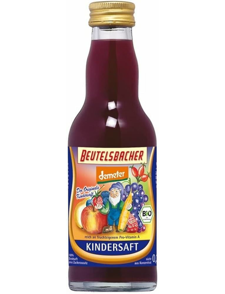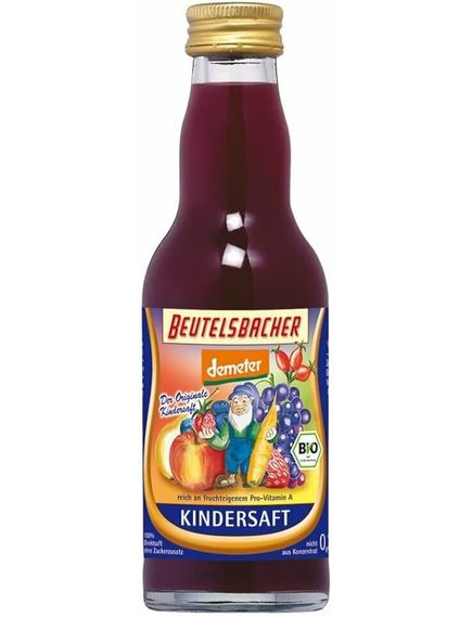 Оригінальний рецепт дитячого соку Beutelsbacher був розроблений спільно з гуманітарною робочою групою з досліджень харчування в Бад-Фільбелі. Ми приділили особливу увагу найрізноманітнішим формам плодів: від морквини в землі до маленьких ягід чорниці та полуниці до куща шипшини та виноградної лози до високих яблунь та груш. При виборі фруктів було вкрай важливо використовувати місцеві фрукти з різними термінами збору і дозрівання, щоб відобразити в дитячому соку весь період родючості в наших широтах - в сенсі цілісного розвитку.