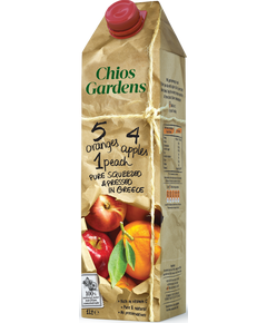 Склад: яблучний сік 55%, апельсиновий сік 35%, персиковий сік 10%. З грецьких фруктів Без добавок Без додавання цукру Без будь-яких підсолоджувачів Не з концентрованого соку