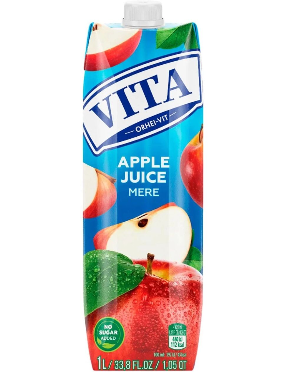 Яблучний сік. Виготовлений із концентрованого яблучного соку. Без додавання цукру, містить цукор природного походження. Без ГМО.