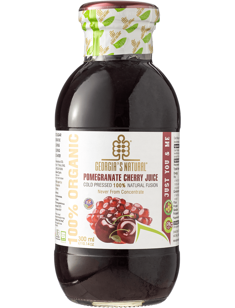 Склад: 100% органічний сік: гранату, солодкої черешні, солодкої білої вишні, терпкий сік вишні, яблучний сік, сік груші.