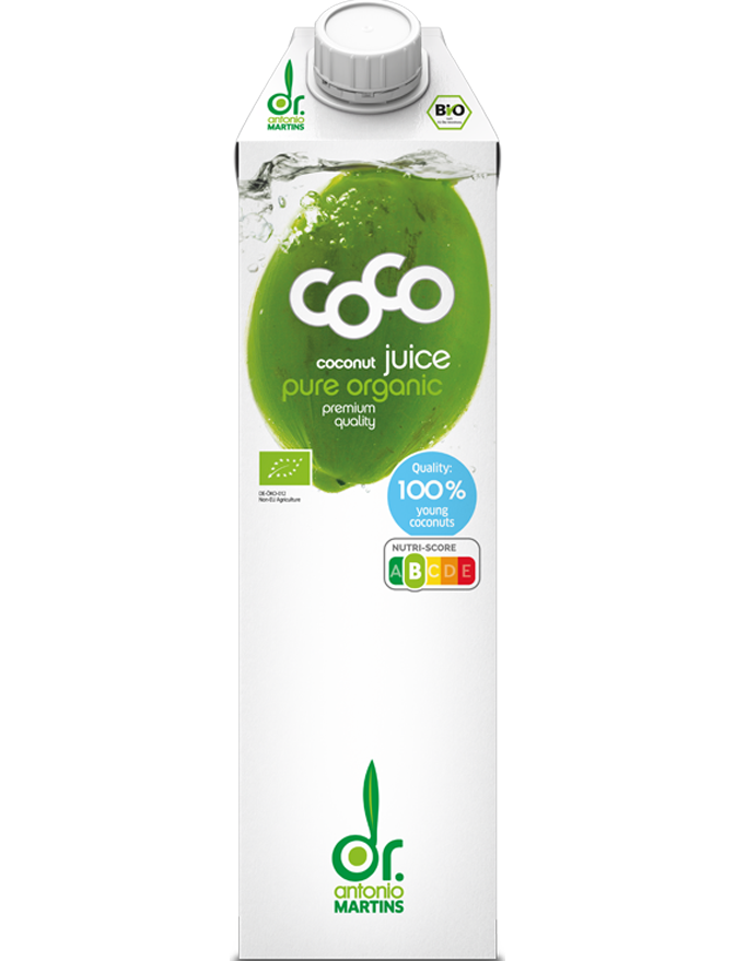 Цей сік – справді враження. Основні поживні речовини, без жиру. А доктор Антоніо Мартінс виробляє сік із молодих кокосових горіхів. Вироблено відповідно до органічних стандартів з ретельно відібраних плантацій.