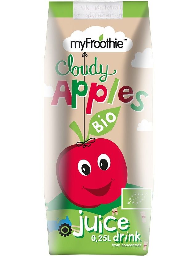 myFroothie виготовлений з органічних яблук із додаванням води. Froothie додали воду, що робить його ніжним для дитячих зубів. Без цукру та консервантів.