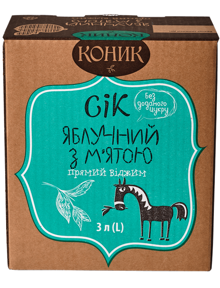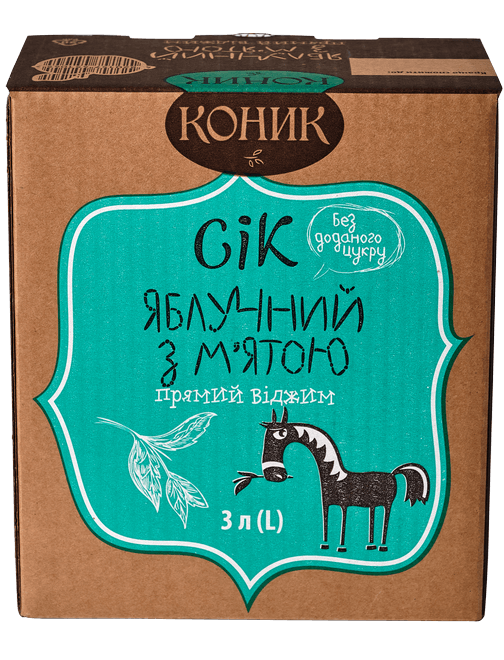 Склад: сік яблучний 100%, з додаванням натурального екстракту листя м'яти перцевої (не менше, ніж 0.7г/л).