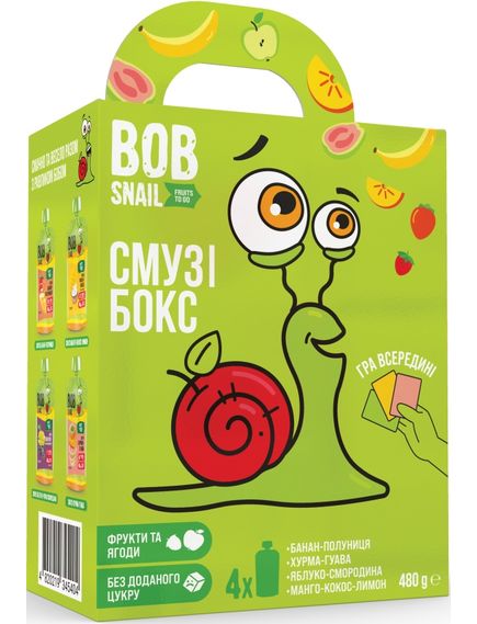 Смузі бокс містить 4 смузі Fruits to Go по 120 г — це швидка фруктова підзарядка у зручному форматі.