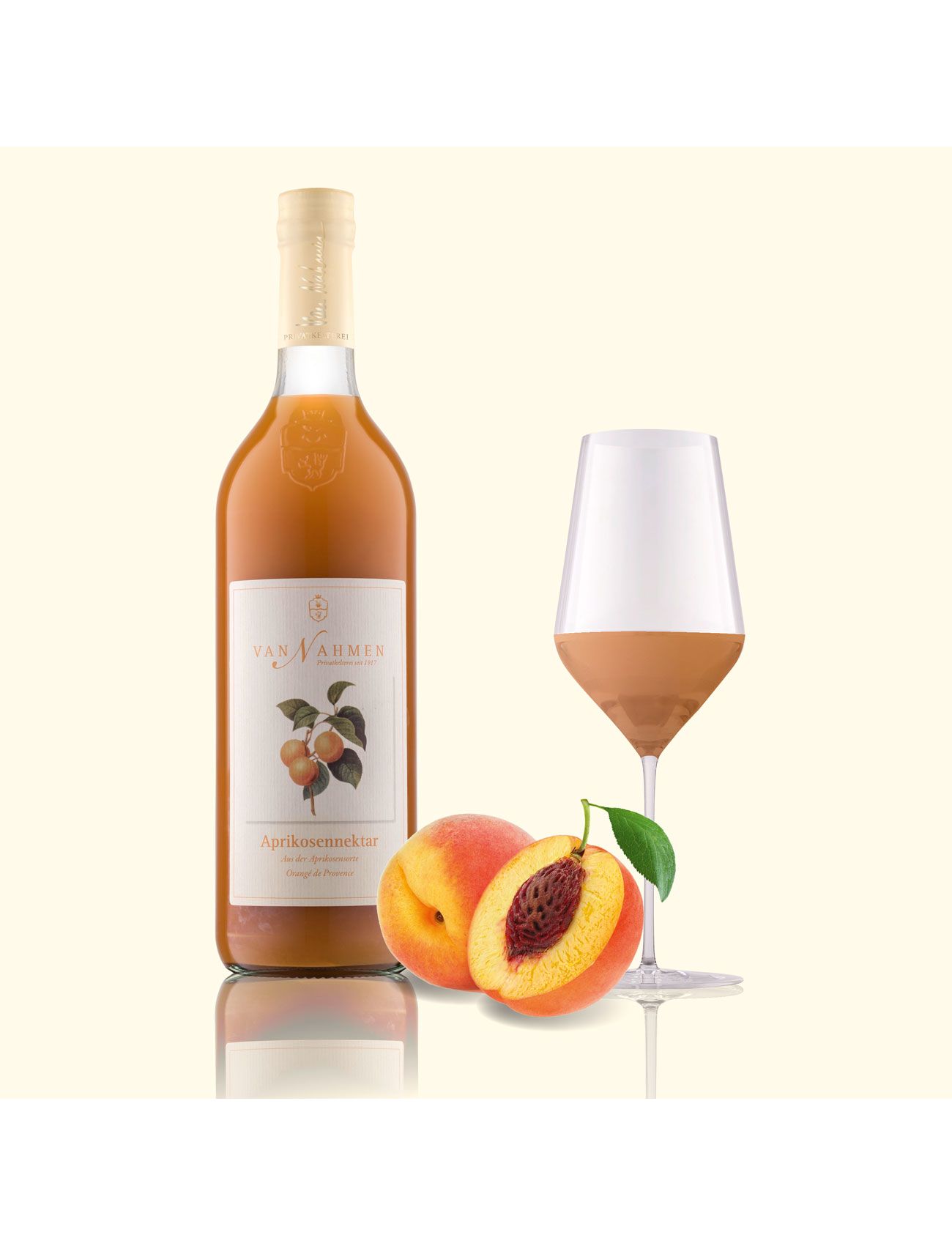 Сік має інтенсивний помаранчевий колір і має помітно в’язку структуру. Жвавий букет відтворює стиглі на сонці та соковиті абрикоси, підкреслені відтінками англійської чайної троянди, цедри мандарина та квітів апельсина. Нектар розповсюджується по смаку з кремовим відчуттям у роті та соковитою солодкістю фруктів у ідеальному балансі з його хрусткою та освіжаючою кислотністю. Складний і пишний сік з тривалим приємним фруктовим та інтенсивним ароматним післясмаком. Для подачі в якості коктейлю рекомендуємо змішати одну частину Orange de Provence з двома частинами сухого ігристого вина. Якщо ви віддаєте перевагу напою без алкоголю, дуже добре підійде суміш 1:1 з газованою водою. Якщо хтось вирішить вибрати версію з ігристим вином як аперитив, до смаку можна віднести шашлик теріякі, крабовий коктейль на тостах або ситні кремові листки. незмішаний, сік є гарним доповненням до багатьох фруктових десертів або чізкейку. Завдяки своїй розкішній консистенції нектар чудово поєднується з терріном з гусячої печінки на бріоші з фруктовим чатні, десертами з сирною масою, як-от сирно-датська випічка, або, можливо, з абрикосовим компотом, обробленим рожевою водою.