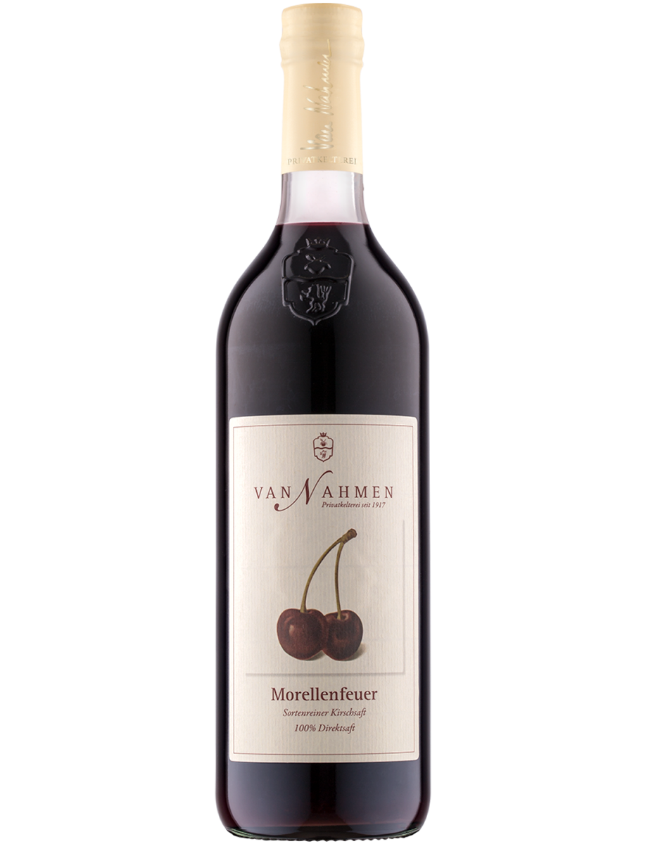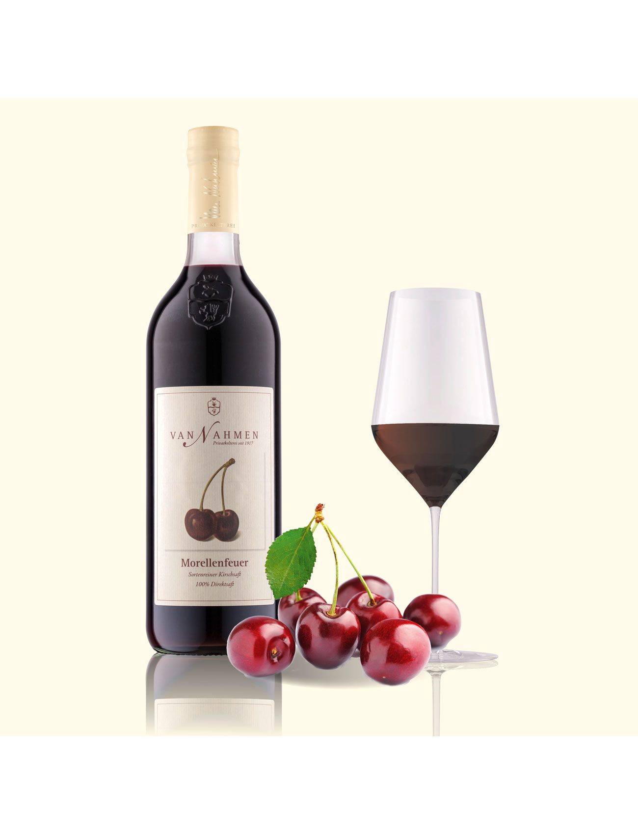 Сорт вишні Morellenfeuer був виведений в середині минулого століття як схрещування Ostheimer Weichsel з типом Früheste der Mark. Оскільки Рейнська область особливо добре підходить для вирощування цього сорту, ми отримуємо вишні, які використовуються для цього соку, від маленьких садівників у регіоні Ахен. Завдяки їх тонкому аромату та м’яким кислотам можна отримати 100% натуральний сік. Залежно від окремого року кислотність буде сильнішою або меншою.