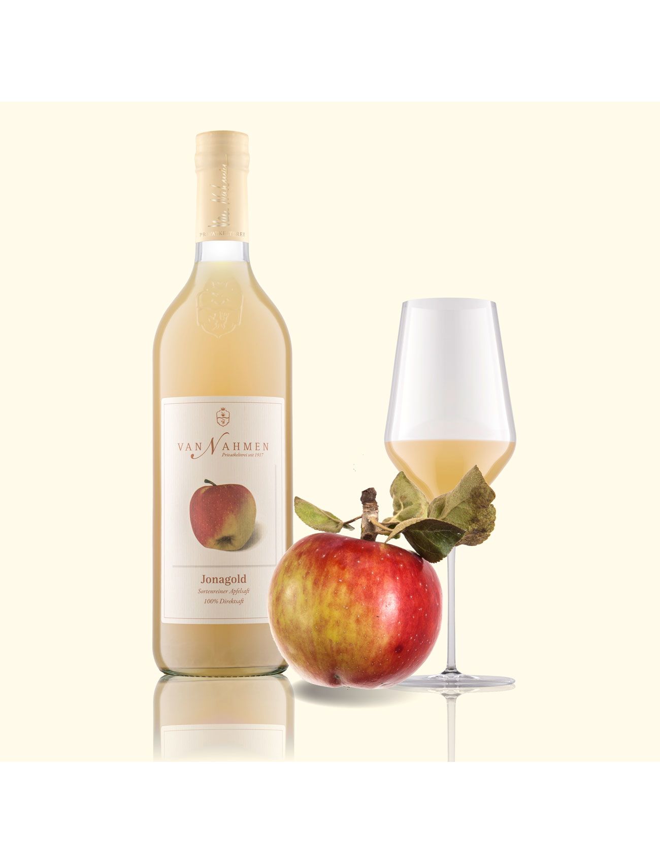 Сорт Jonagold, який використовується для цього яблучного соку, походить з органічних ферм у типових фруктових регіонах Німеччини. Сорт Джонаголд є щось середнє між сортами Голден Делішес і Джонатан. Сік має збалансований смак і стійкий, солодкуватий, злегка кислуватий аромат.ті.
