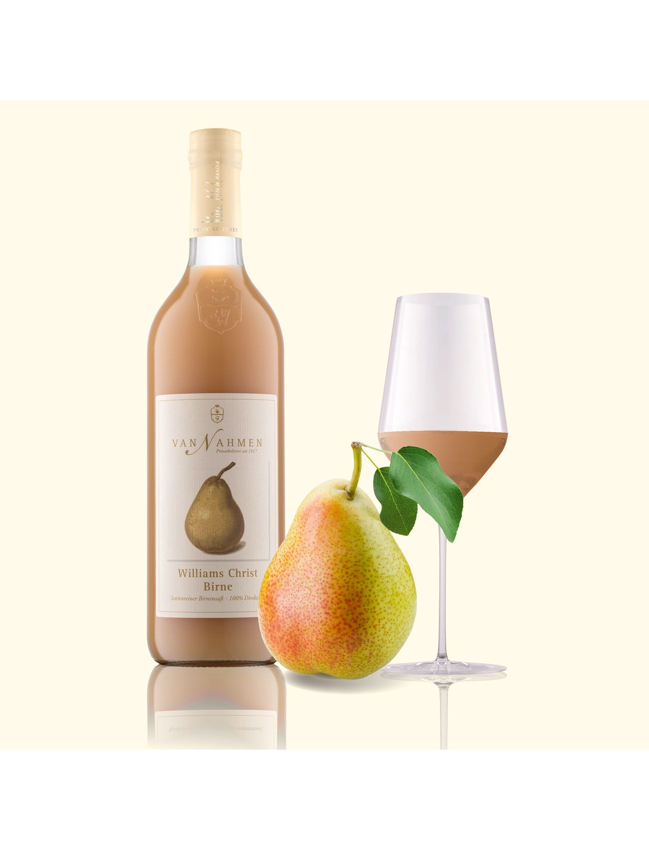 З інтенсивним ароматом жовтих, соковитих і стиглих груш Вільямс і їх маслянистої м'якоті. Його букет підкреслюється нотами англійської троянди, шипшини і кремового квіткового меду з відтінком меліси. На смак сік виявляє тонку солодкуватість, а стримана кислотність надає соку м’який смак і кремову текстуру. Сік не містить дубильних речовин; це ще раз підкреслює його делікатну, приємну та щедру природу, надаючи приємного сяйва жовтим фруктовим ароматам фіналу. У співвідношенні 1:1 з яскравою газованою водою сік стає менш пишним за текстурою, а тонкі трав’янисті ноти в букеті виходять на перший план. Подавайте разом із класичними німецькими стравами, як-от груші з квасолею та шинкою, або фрикасе з куркою та каперсами, грибами та горохом, але також з м’яким, м'який козячий сир або більш стриманий блакитний сир, як горгонзола дольче. Стимулює також веганські страви, такі як запікання з червоного буряка з грушами, волоськими горіхами та сиром кешью. Ніжний і тонко ароматний сік дуже добре поєднується з прісноводною рибою, такою як арктичний голець з огірками з кропом, або злегка копченим вугром з гусячою печінкою, але однаково добре поєднується з ніжною молочною телятиною або стравою з молодої та ніжної козлятини.