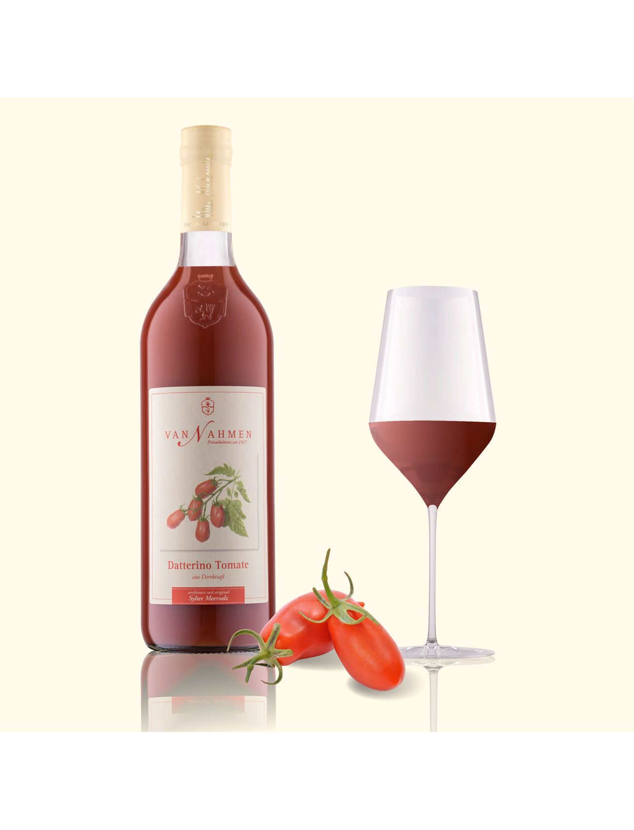 Помідор Даттеріно родом із Сицилії. Цей дуже маленький, довгастий, блискучий яскраво-червоний помідор за формою нагадує невеликий фінік, за що отримав прізвисько «фініковий помідор». Однак його найвідмітнішими рисами є захоплюючий профіль аромату та яскраво виражена солодкість. Це дозволяє досягти вищого рівня солодкості, ніж у звичайних сортів томатів. Щоб ще більше підкреслити особливий стиль Datterino, Пітер ван Намен об’єднався з пристрасним виробником спецій Інго Холландом, щоб розробити невелику дозу доданої солі. Він вибрав «морську сіль Sylt» із соляної фабрики Александро Папе.