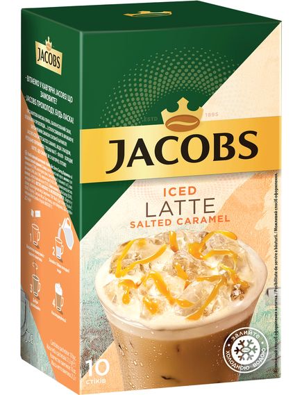 Jacobs Iced Latte Salted Caramel, вода з льодом, ретельно перемішати, трохи магії — вуаля — холодне лате готове!