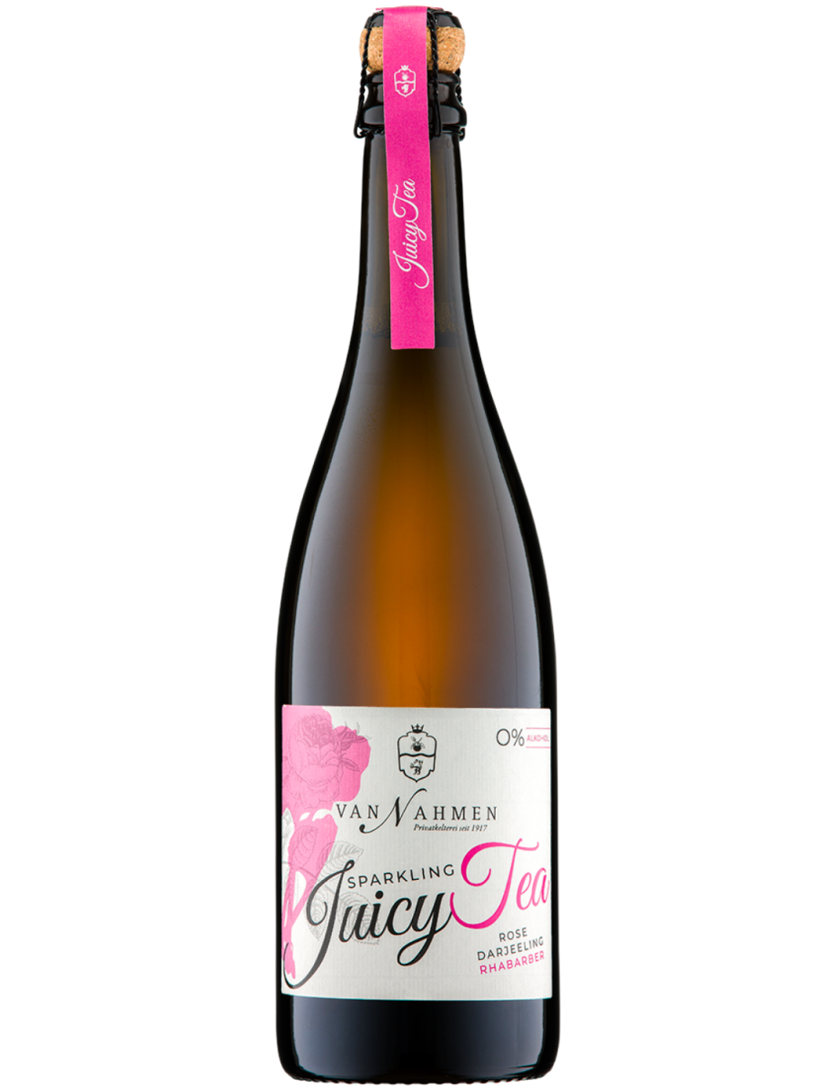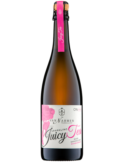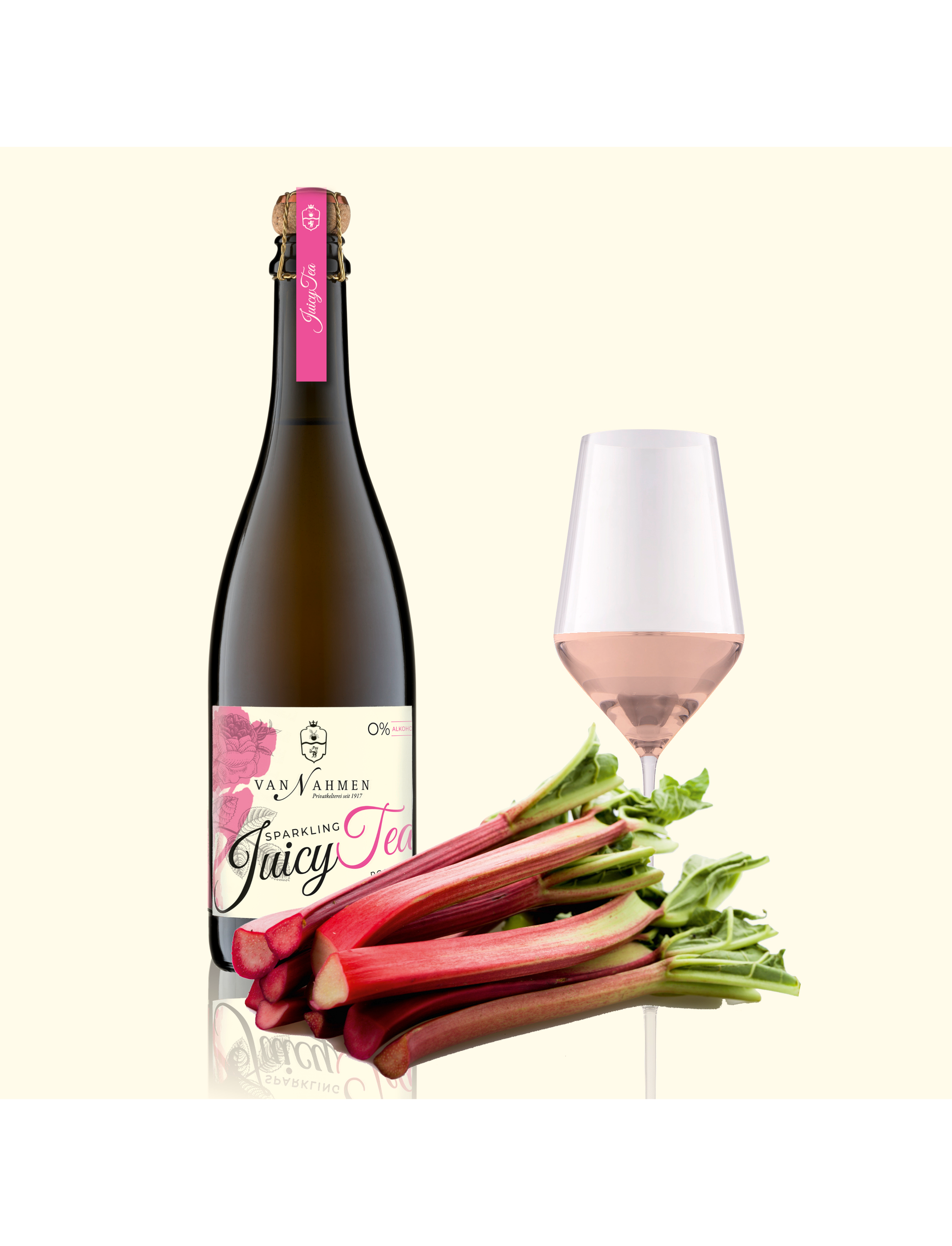 Секрет високоякісного кюве полягає в його складі. Ми працювали з відомими чайними сомельє, щоб створити цей безалкогольний ігристий соковитий чай. Виготовлений за допомогою процесу холодного заварювання, він поєднує в собі фруктовість односортних соків van Nahmen з нотами добірного чаю, створюючи гармонійний смак. М’який і квітковий аромат чаю Дарджилінг поєднується з делікатно гострим соком червоного стебла ревеню з місцевих сортів Саттон і Фрамбозен. Рецепт завершується кількома краплями рожевої води.