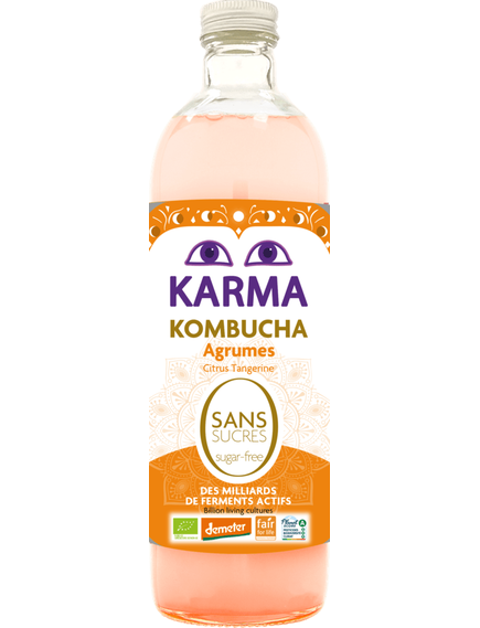 Склад: комбуча* (вода питна фільтрована, цукор світлий тростинний * (нейтралізується в процесі ферментації), чай зелений *, чай чорний *, культури комбуча (бактерії та дріжджі)), настій перцю "Тімур Бері"* (вода питна, перець "Тімур Бері"*), сік корсиканського клементину* 1%, сік мандарина* 1%, сік маракуї* 1%, настій гібіскуса* (вода питна, квіти гібіскуса*), настій листя стевії* (вода питна, листя стевії*), екстракт лимона*, культура.відібрана жива *органічного виробництва. Містить сліди спирту (<1.2% об.)