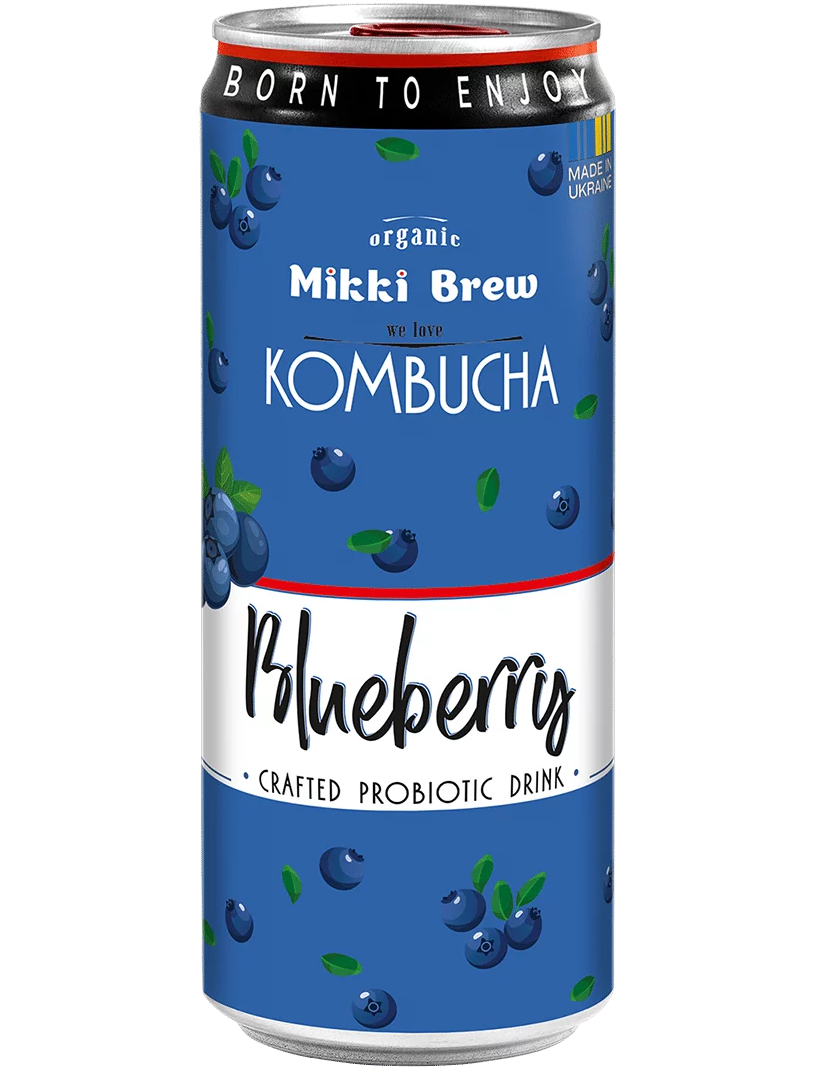 Напій Mikki Brew Kombucha Blueberry - це ніжне поєднання ягід чорниці та класичної комбучі.