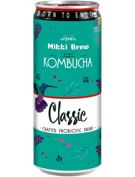 Mikki Brew Classic - це класична комбуча в зручній упаковці об'ємом 330 мл. Комбуча – це напій, який виробляється шляхом ферментації солодкого чаю за допомогою симбіотичної культури бактерій та дріжджів. Цей процес надає комбучі унікальні смакові та ароматичні характеристики, а також збагачує напій корисними речовинами.